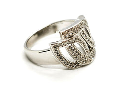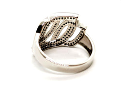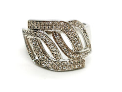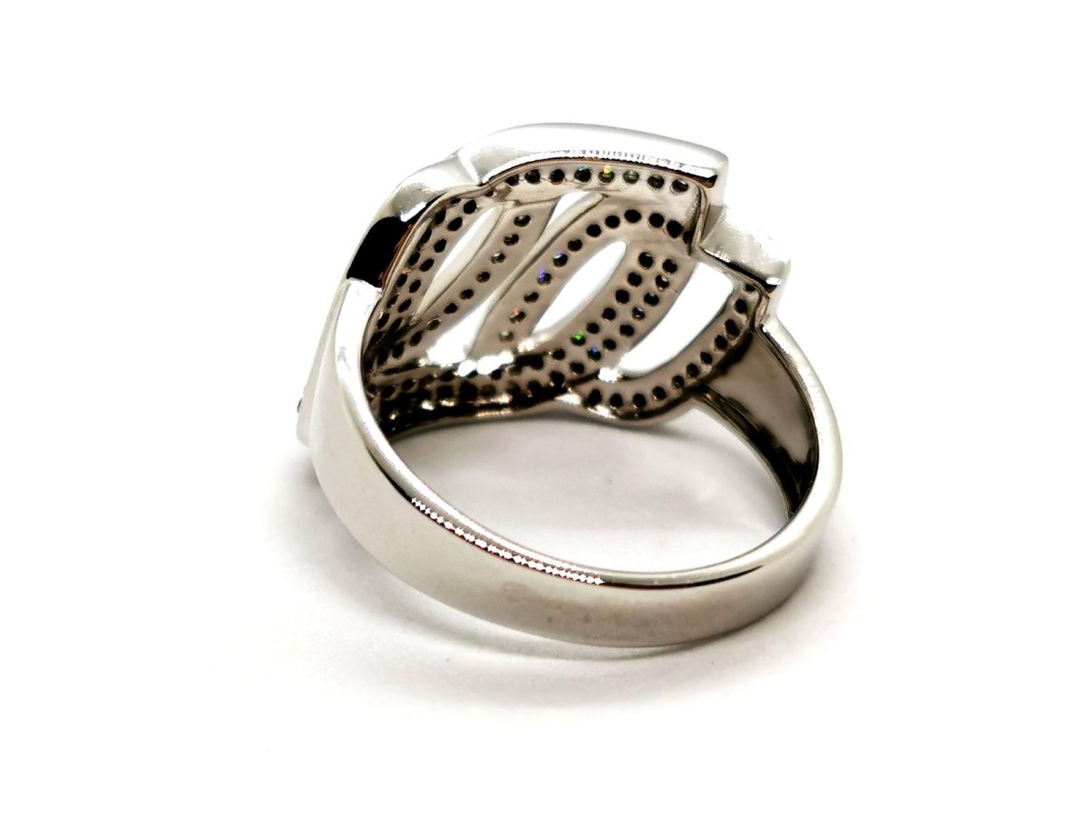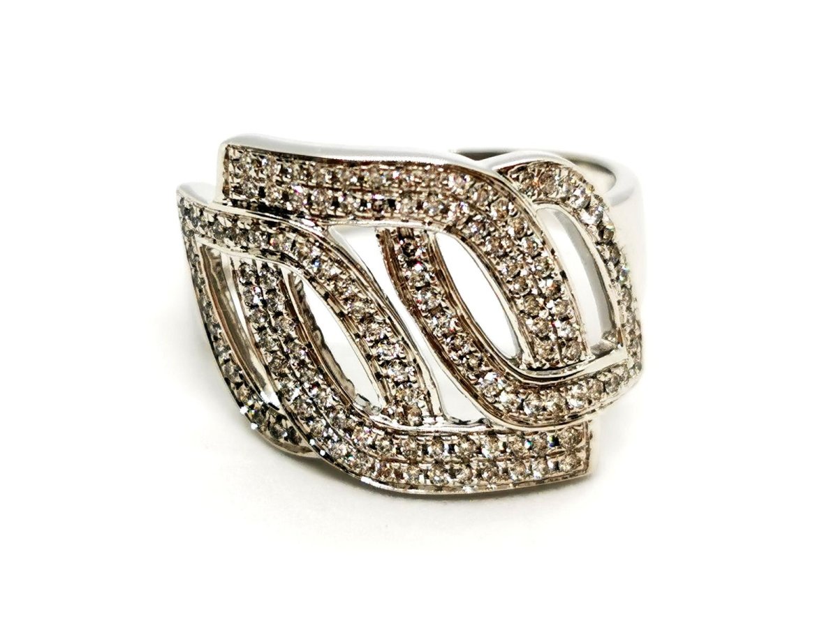 Diamond ring. in 750 thousandths (18 carat) white gold. pattern paved with 120 diamonds. brilliant cut. total diamond weight: approximately 0.60 ct. finger size: 54. width on top: 1.42 cm. total weight: 5.31 g. eagle head hallmark. excellent condition