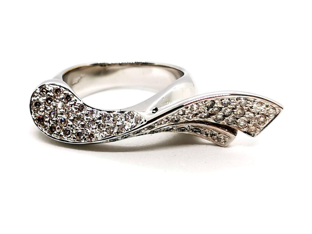 Diamond ring in 750 thousandths (18 carat) white gold. wave shape. set with 55 brilliant diamonds. total diamond weight: approximately 0.494 ct. width on top: 0.94 cm. finger size: 54. total weight: 11.61 g. Owl hallmark. excellent condition.