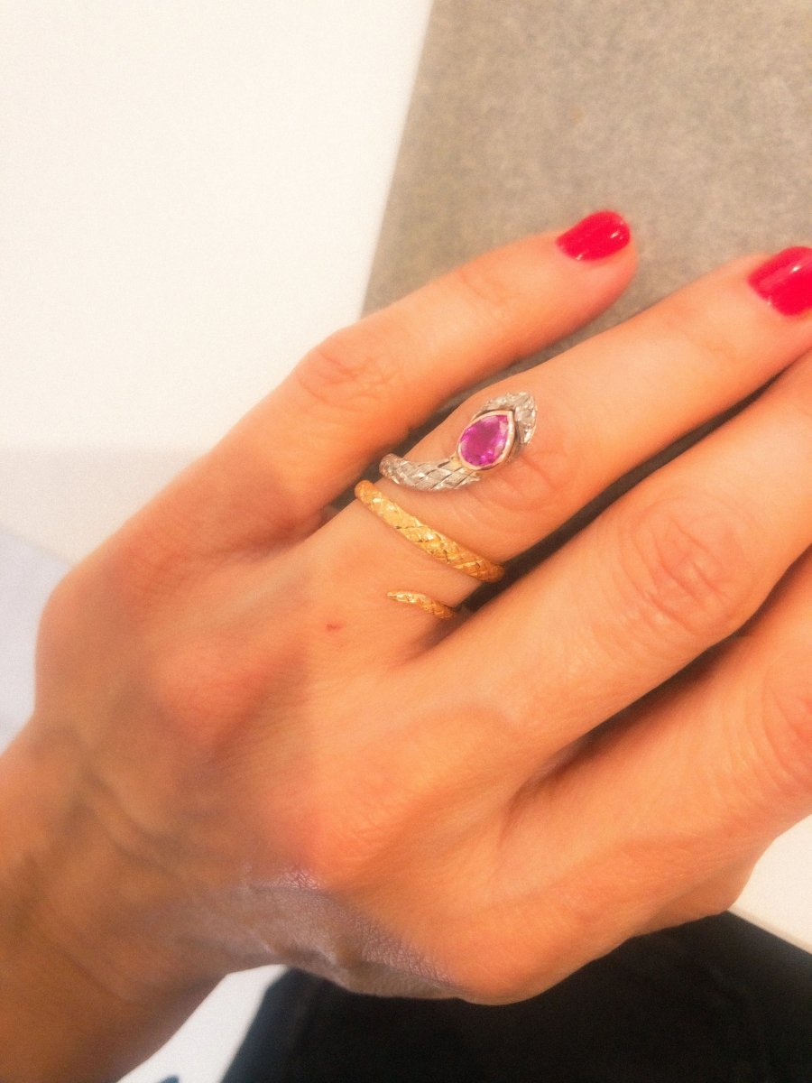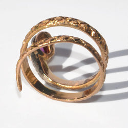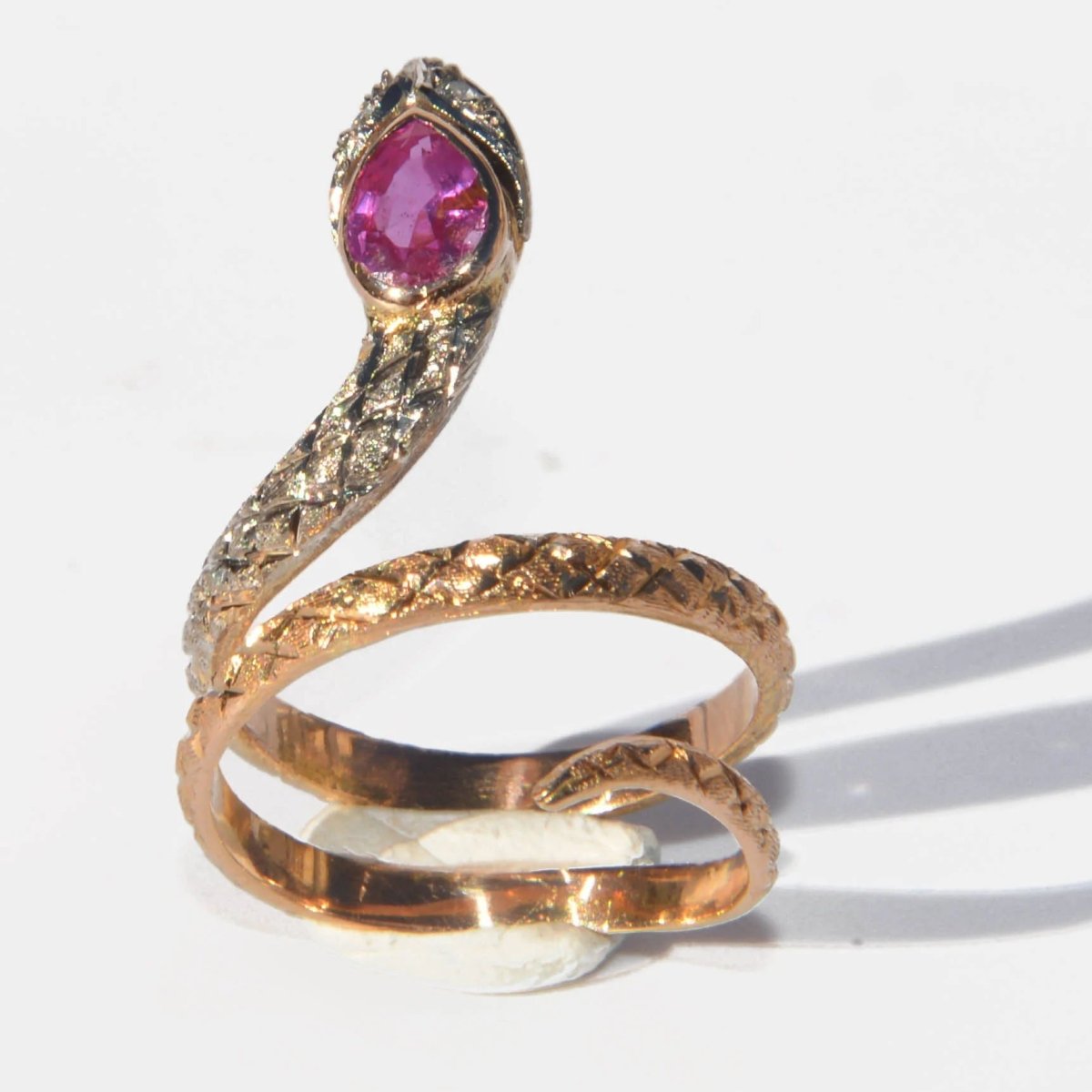 Ring in yellow and white gold nicely carved in tortoiseshell, the head is set with an oval ruby of approximately 0.70ct. Material: 18k yellow and gray gold Hallmark: Eagle head Weight: 7.7 grams Length: 2.5cm Adjustable finger size: 55.5 Carat number: 0.70ct Number of stones: 1 Period: 1910-1920