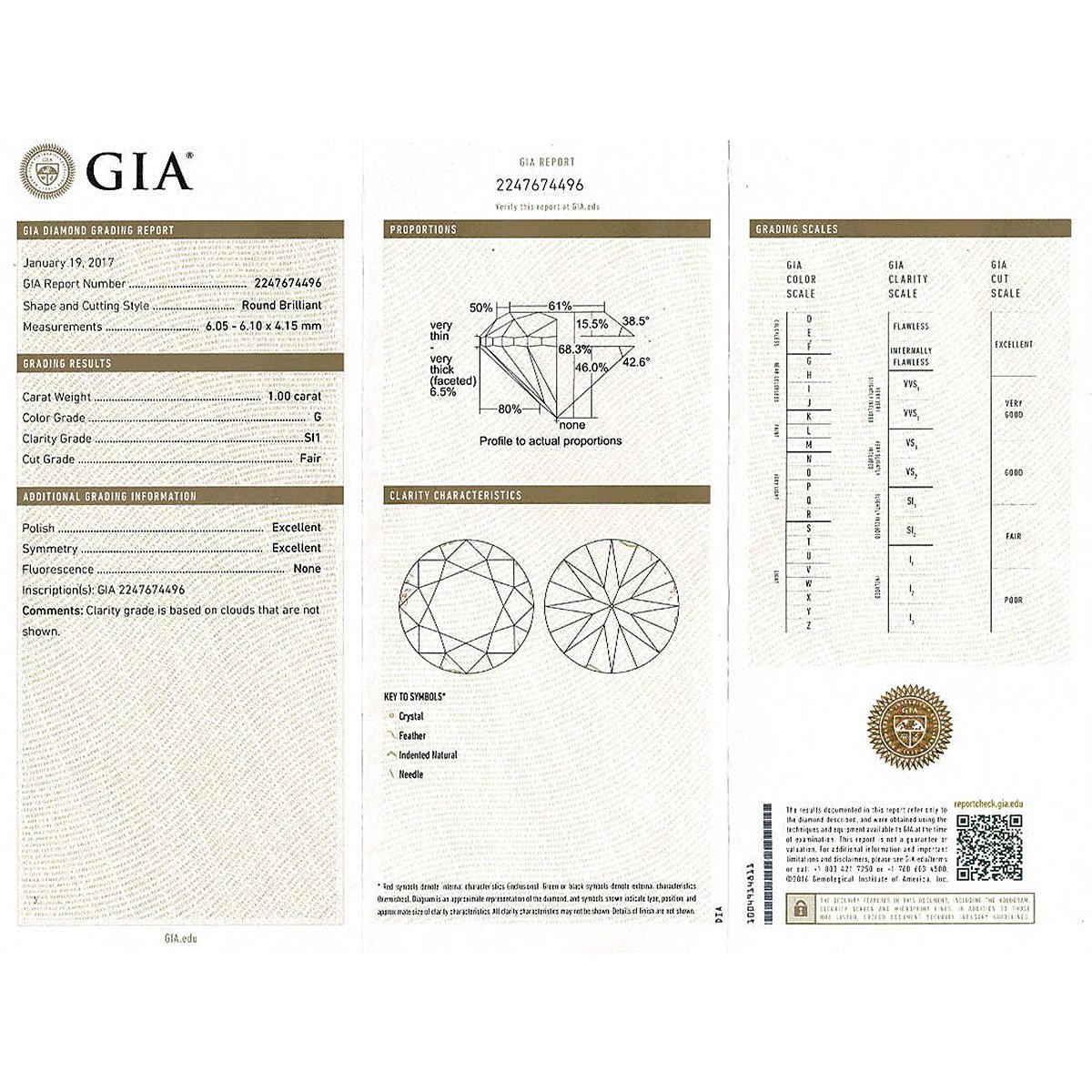 A 750/000 white gold ring set with a 1 carat brilliant-cut diamond, surrounded and supported by brilliant-cut diamonds (approximately 0.26 ct in total). Quality of the central diamond: G/SI1. Certificate from the GIA laboratory. Width: 10mm Height: 6mm Weight: 3.5 grams Diamond weight: 1.26 carats total Finger size: 53