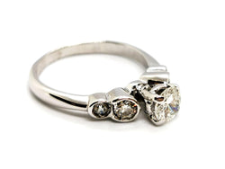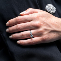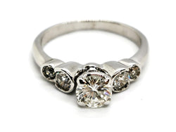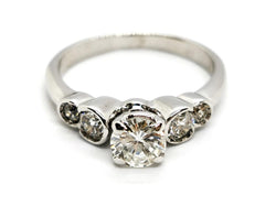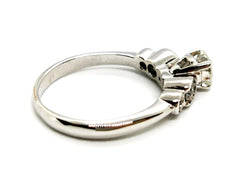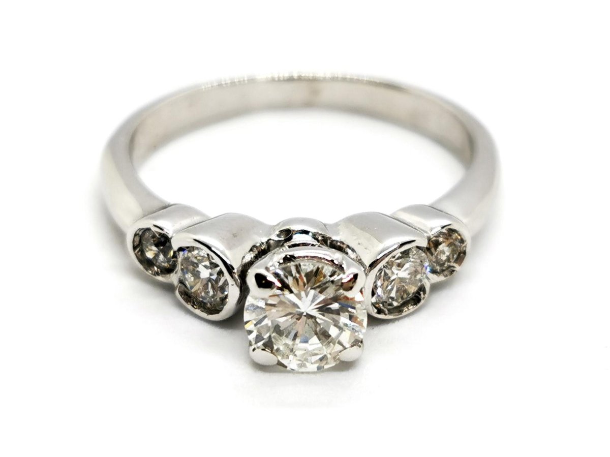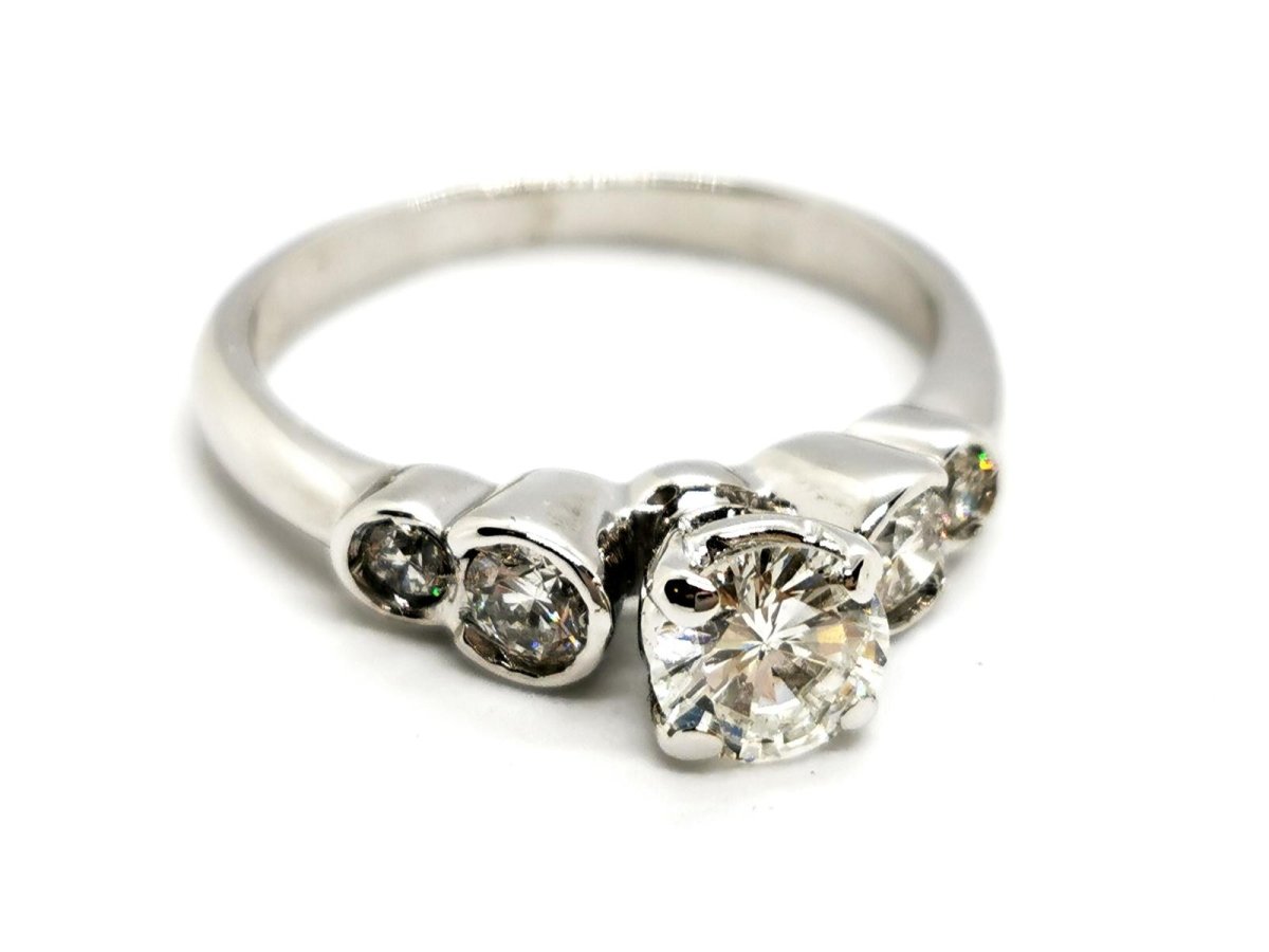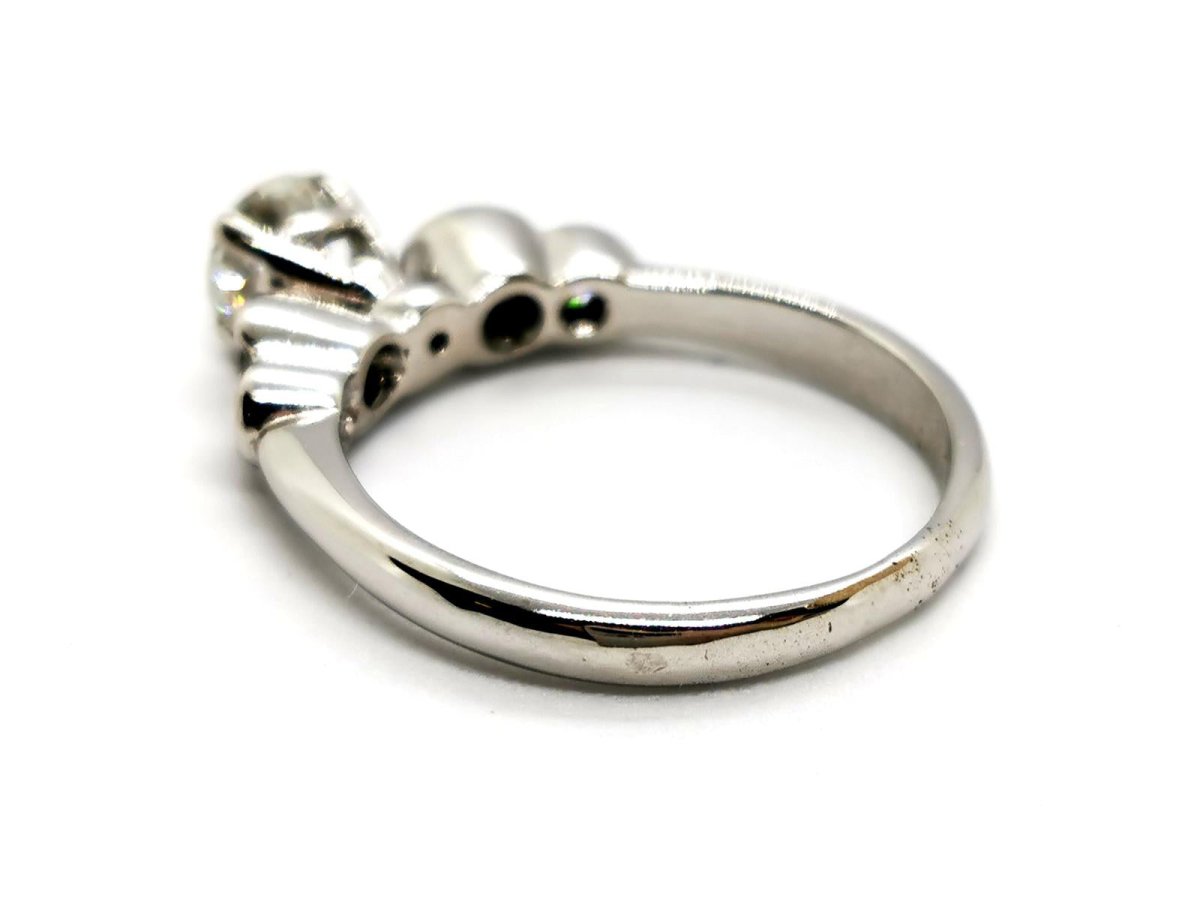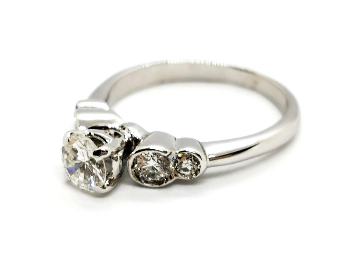 Diamond solitaire ring. in 750 thousandths (18 carat) white gold. set in the center with a diamond. brilliant cut. of approximately 0.55 ct. set with 4 claws. and shouldered in a closed setting. of 2 brilliant-cut diamonds of approximately 0.13 ct each. and 2 brilliant-cut diamonds of approximately 0.05 ct each. total diamond weight: approximately 0.91 ct. finger size: 55. width on top: 0.55 cm. height: 0.8cm. total weight: 4.16 g. eagle head hallmark. excellent condition