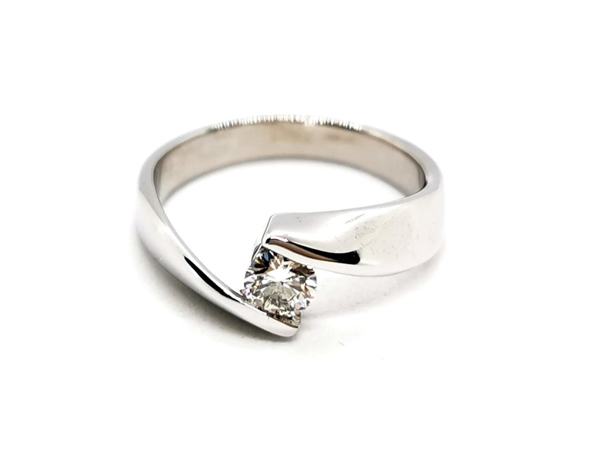 Diamond solitaire ring. in 750 thousandths (18 carat) white gold. holding a diamond in the center. brilliant cut. of approximately 0.19 ct. finger size: 48. width on top: 0.6 cm. total weight: 3.51 g. eagle head hallmark. excellent condition.