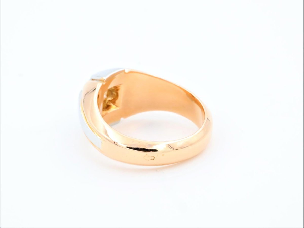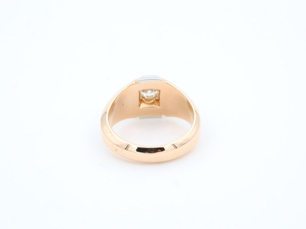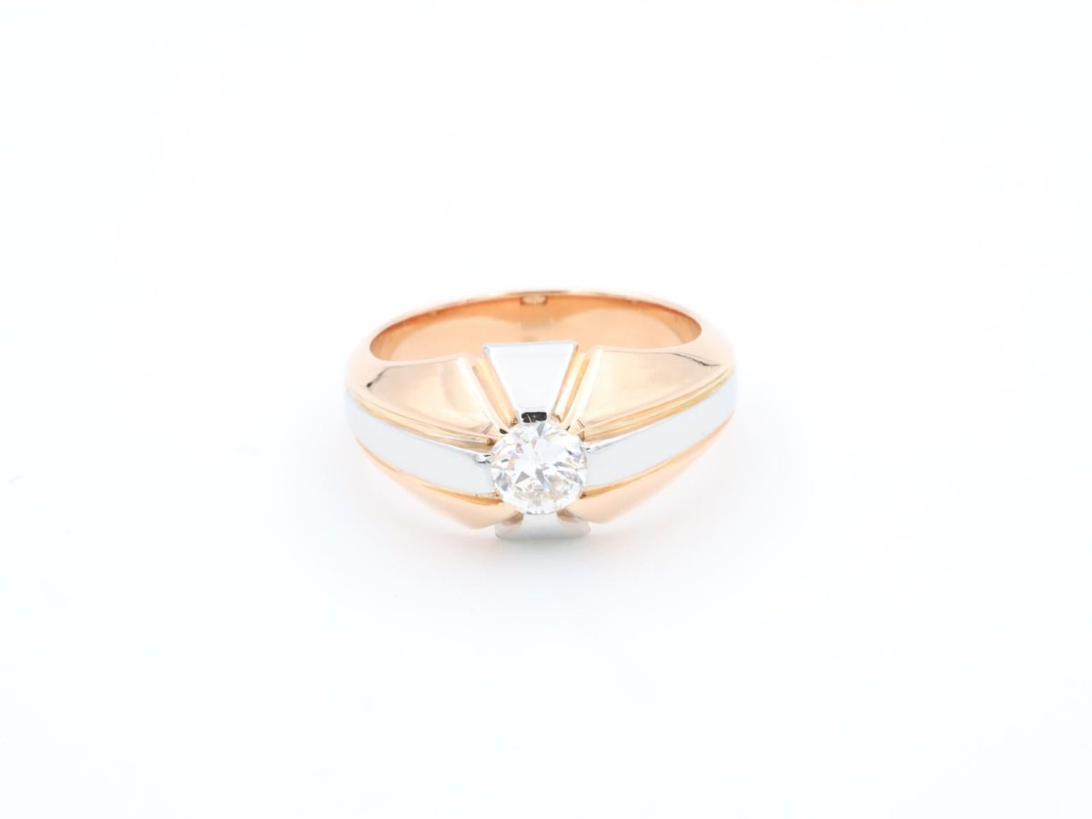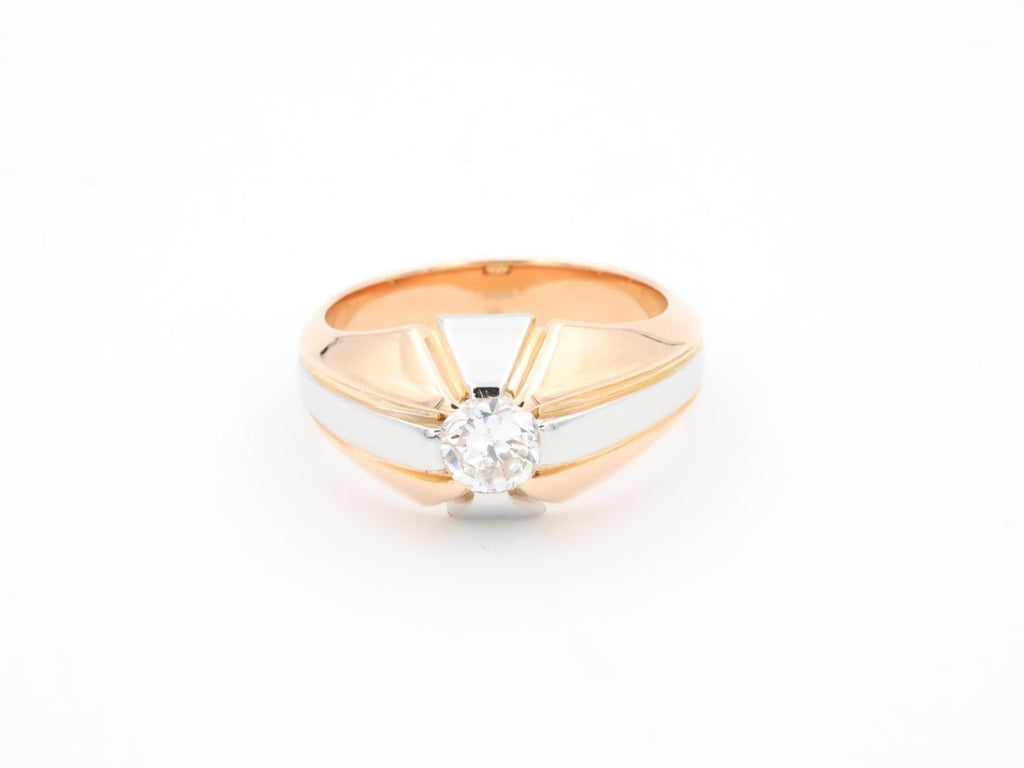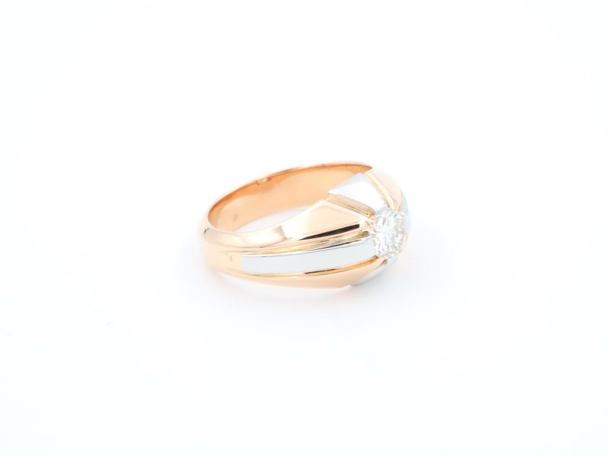 Soliraire tank ring in 24 thousandths (18 carats) yellow gold and 950 thousandths platinum. brilliant cut diamond of approximately 0.44 ct. height 0.51 cm. width on top: 1.25 cm. width of the ring: 0.49 cm. ring size: 56. total weight: 13.08 g. eagle head and dog head hallmark. excellent condition