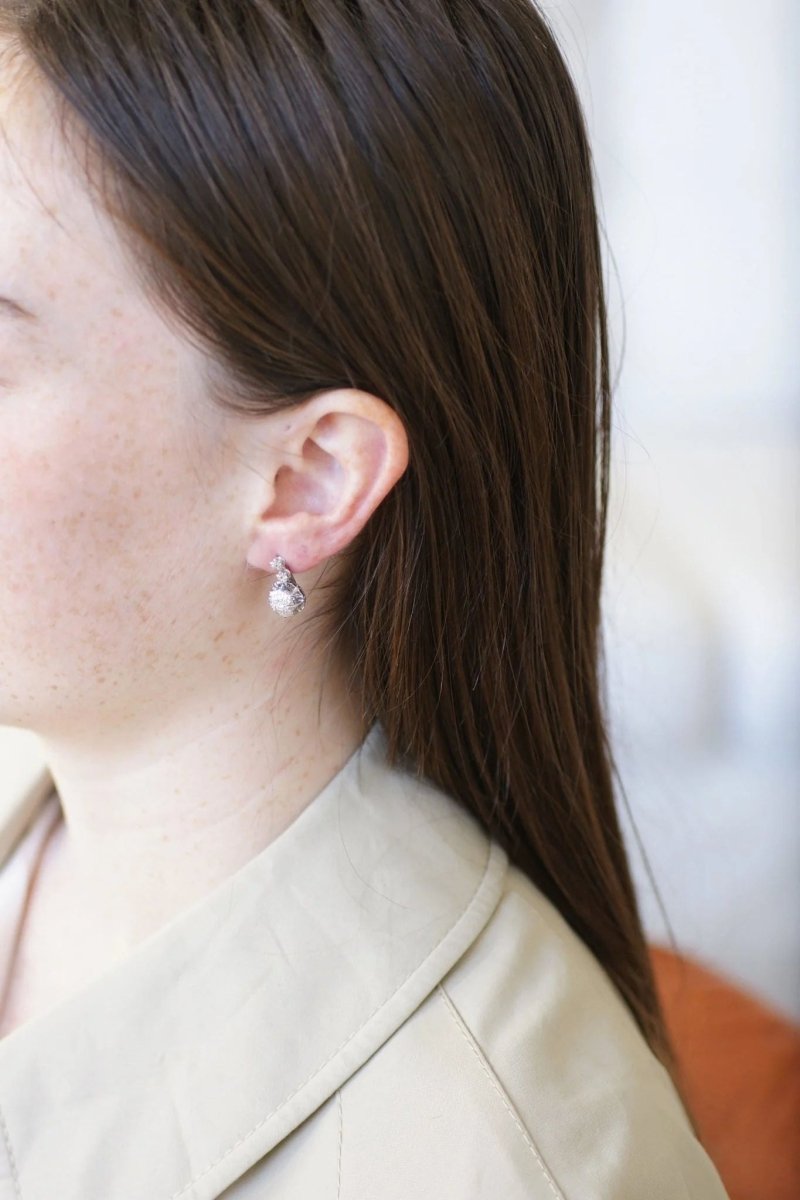 Antique earrings in 18kt white gold (hallmark: eagle's head) adorned with an illusion bezel set with a central brilliant-cut diamond in an entourage of 8X8 and rose-cut diamonds. The total weight of the diamonds estimated at approximately 0.40Ct. Alpa clasps. French work, Art Deco, circa 1935. Gross weight: 5.18 g Height: 1.80 cm Width: 1.10 cm Condition: very slight micro scratches on the gold parts, slight traces of soldering on the back, see photos. Did you know ? There is an average of 1 carat usable in jewelry for a ton of diamonds extracted from the mine. Are you looking for more eco-responsible jewelry? Delicate and timeless, these earrings will be a very good investment. All our antique earrings .