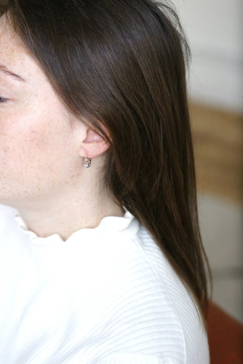 18kt yellow gold and platinum sleeper earrings (hallmark: eagle's head) adorned with old-fashioned cut diamonds, weighing a total of approximately 0.50 Ct (estimated color H and K, estimated clarity SI), topped with rose-cut diamonds. French work, Circa 1900. Gross weight: 3.67 g Height: 1.40 cm Height: 0.80 cm Condition: very light micro scratches on the gold and platinum parts, slight wear on the setting, slight shocks and losses on the diamonds, see photos. Discover the different types of 17th Century to late Victorian earrings . All our antique earrings.