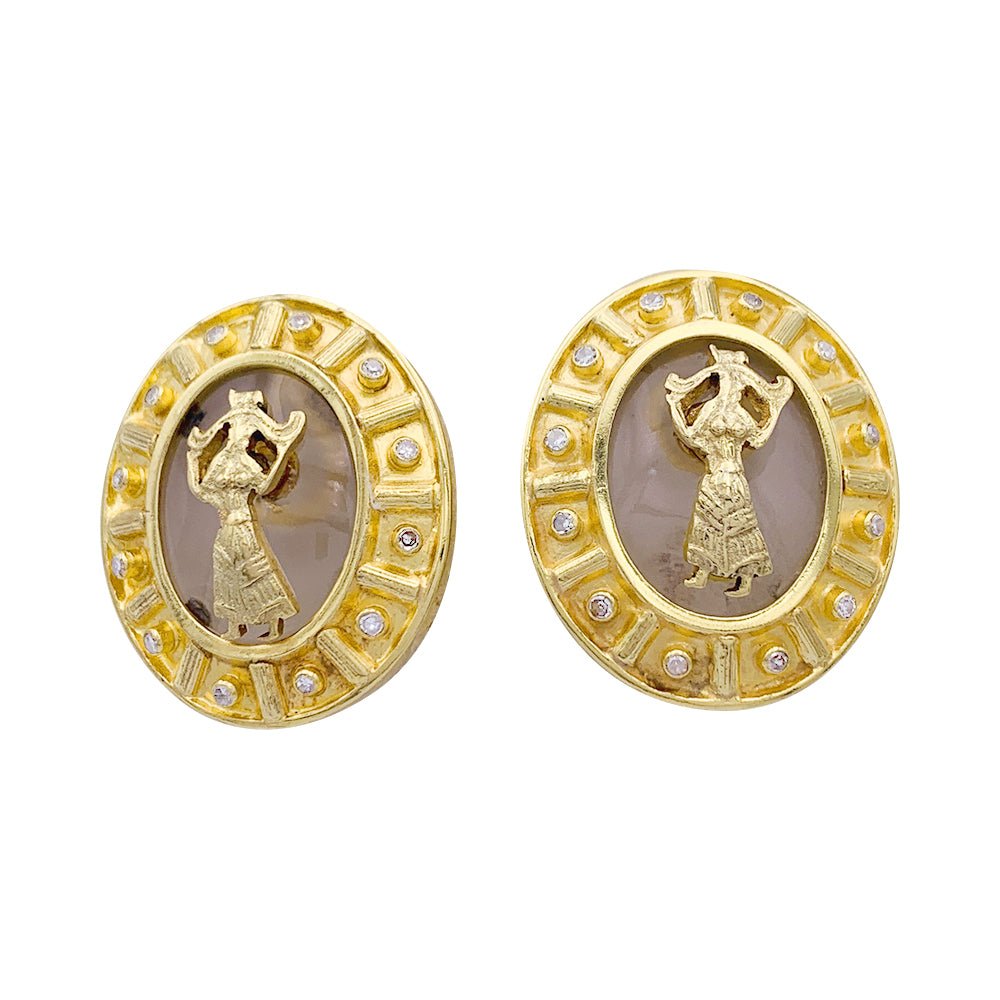 LALAOUNIS clip earrings in yellow gold, diamonds, and rock crystal