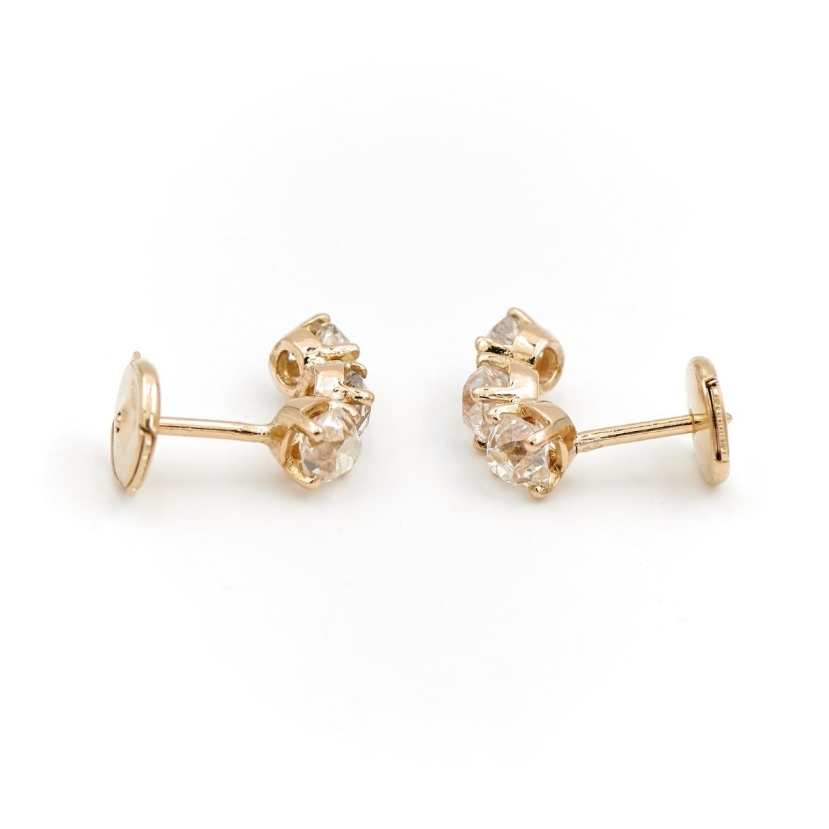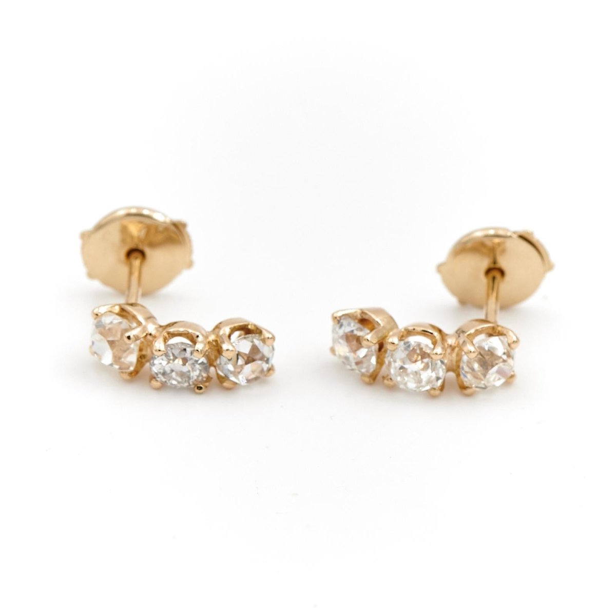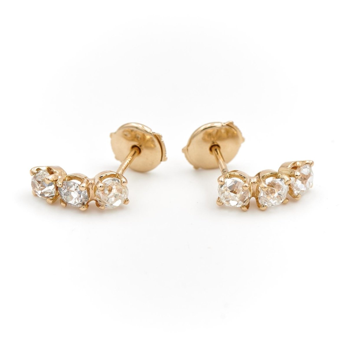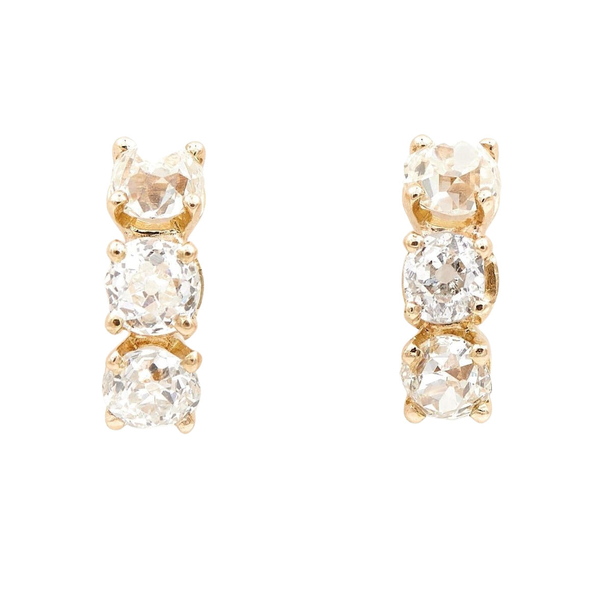 18-carat yellow gold earring adorned with 6 old-cut diamonds. approximately 0.23 carat each. Alpa clasp. Total weight: 3.08 g Total diamond weight: 1.38 carats Dimensions: 1.30 cm x 0.43 cm