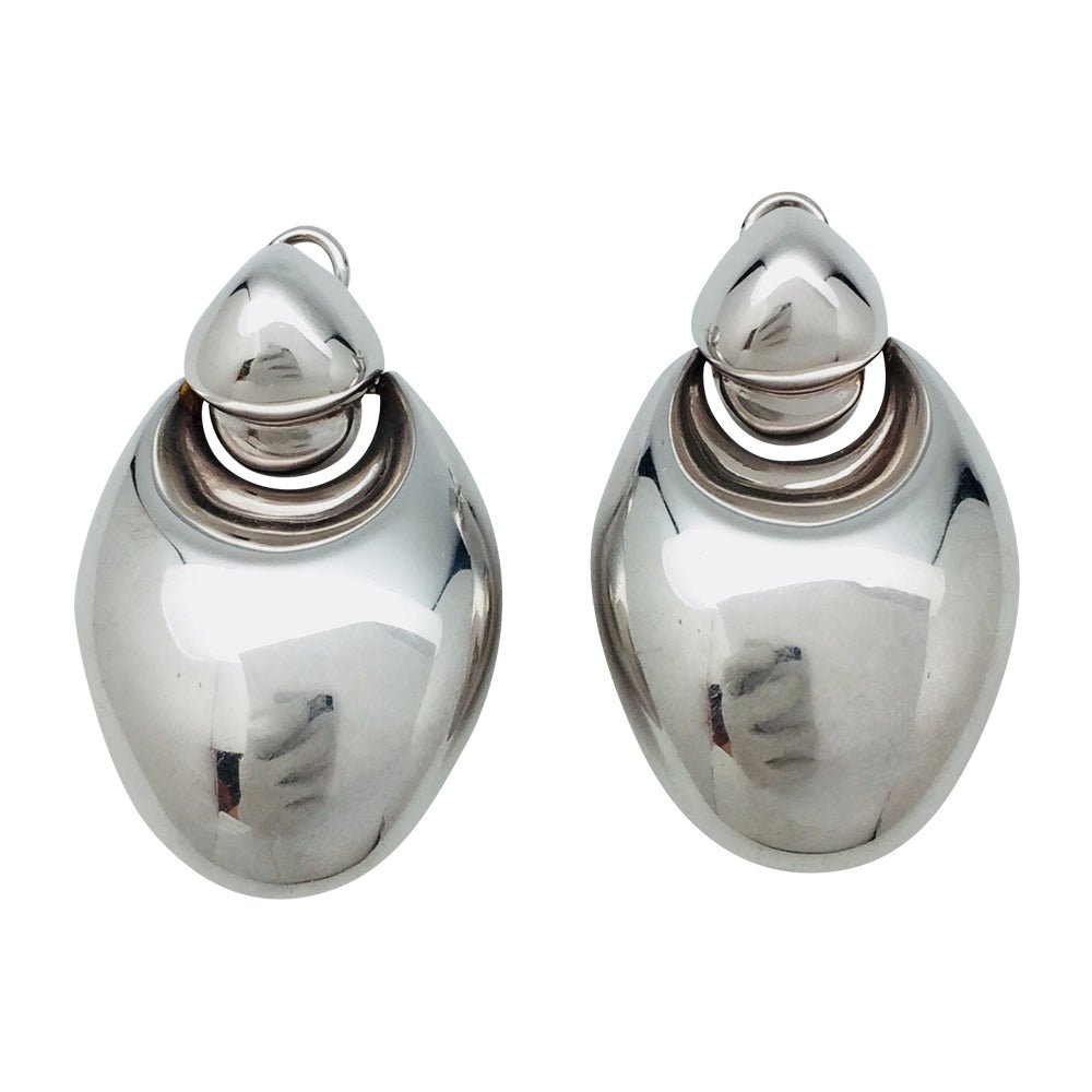 An important pair of hanging earrings in 750/000 white gold. Length: 46mm Width: 30mm Weight: 19.7 grams