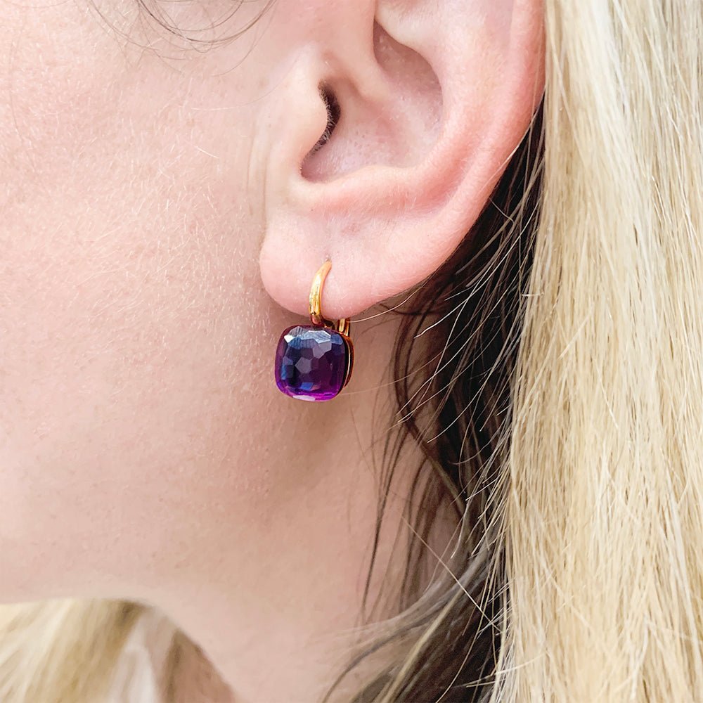 A pair of earrings signed by Maison Pomellato, 'Nudo Classic' collection, in 750/000 pink and white gold decorated with faceted amethysts. Length: 20mm Width: 10mm Height: 10mm Weight: 9.3 grams New price: 4850 Original box: Yes