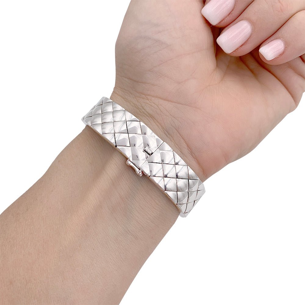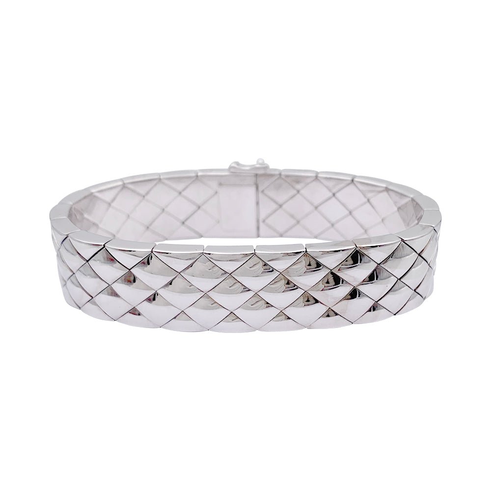 A bracelet signed by Maison Chanel, “Matelassé” collection, composed of a semi-articulated mesh featuring the famous quilted pattern. Size S. Length: Size 16 Width: 13mm Weight: 87 grams