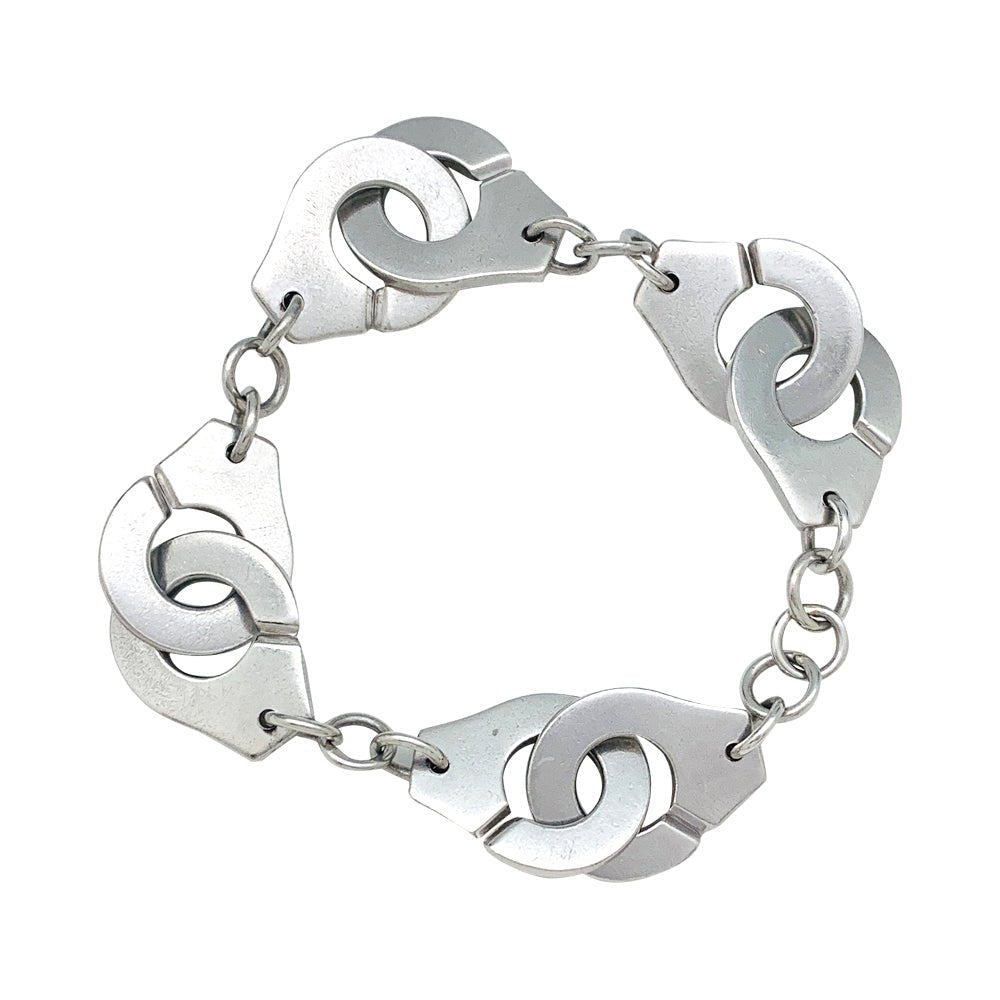 A bracelet signed by Maison Dinh Van, 'Menottes R20' collection, made up of four handcuff motifs in 925/000 silver. Length: 190mm Width: 20mm Height: 7mm Weight: 53.7 grams. New price: 850