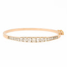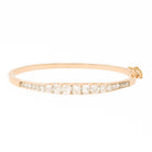 750 thousandths (18 carat) pink gold bangle bracelet. set with 19 old-cut diamonds. central diamond of approximately 0.62 ct. 18 diamonds (2 diamonds of approximately 0.40 ct each. 2 of approximately 0.33 ct each. 2 of approximately 0.27 ct each. 2 of approximately 0.15 ct each. 6 of approximately 0.08 ct each and 4 of approximately 0.02 ct each). Total weight of diamonds: 3.48 cts. wrist circumference: 17 cm. width: 0.54 cm. Safety chain. total weight: 13.48 g. eagle head hallmark. excellent condition