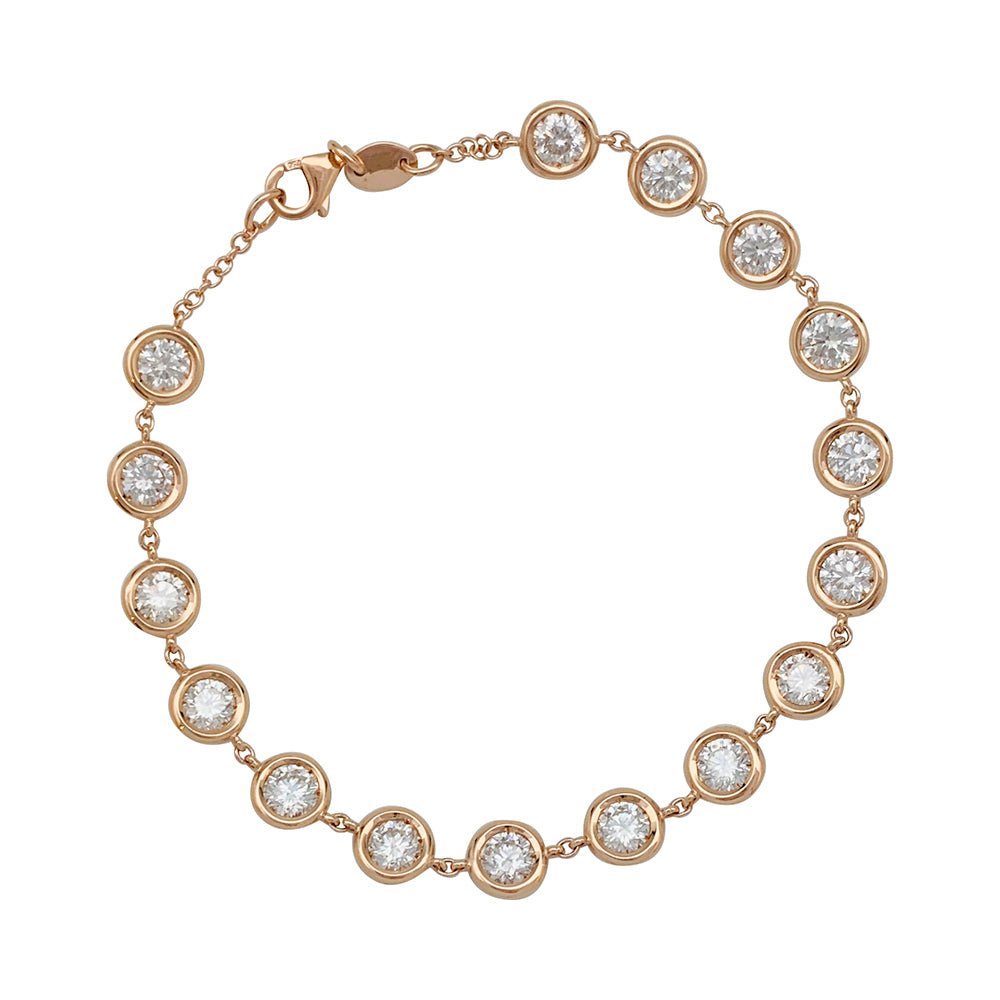 A flexible bracelet in 750/000 pink gold, composed of 16 brilliant-cut diamonds in a bezel setting. Length: 180mm Weight: 6.6 grams Diamond weight: 4.50 cts