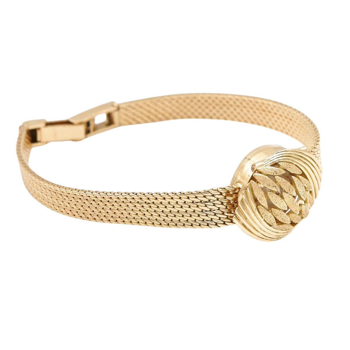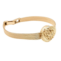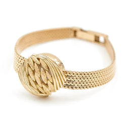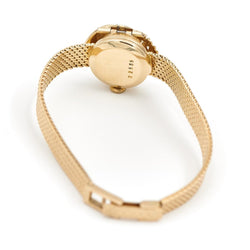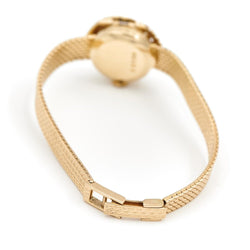 Ladies' secret watch signed by BUCHERER in 18-carat yellow gold. The dial is covered with a removable openwork pattern. Total weight: 25.87 g Case size: 1.85 cm. length: 18cm Strap width at the front: 0.77 cm Width of the bracelet on the reverse: 0.47 cm