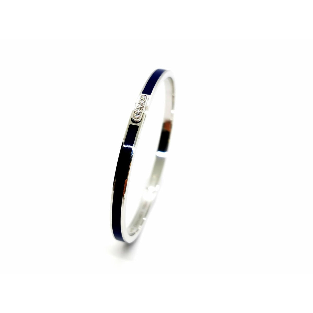 Bracelet signed by CHAUMET, Liens Evidence collection, in 18-carat white gold and blue lacquer with link set with 5 brilliant-cut diamonds of approximately 0.01 carat each. New price: €4,690 Total weight: 14.43 g Total diamond weight: approximately 0.05 carat Size: 15cm. width: 0.35cm Hallmark: eagle head