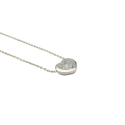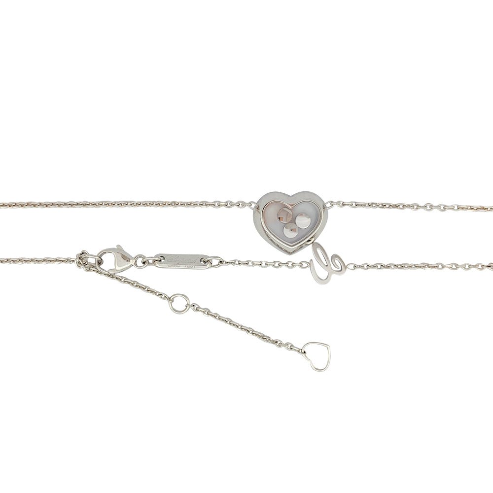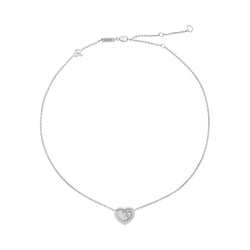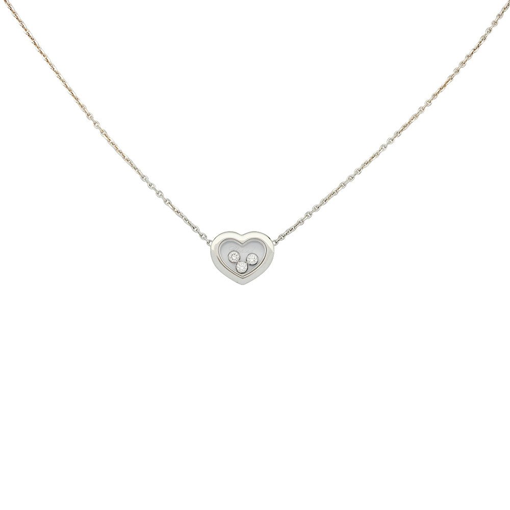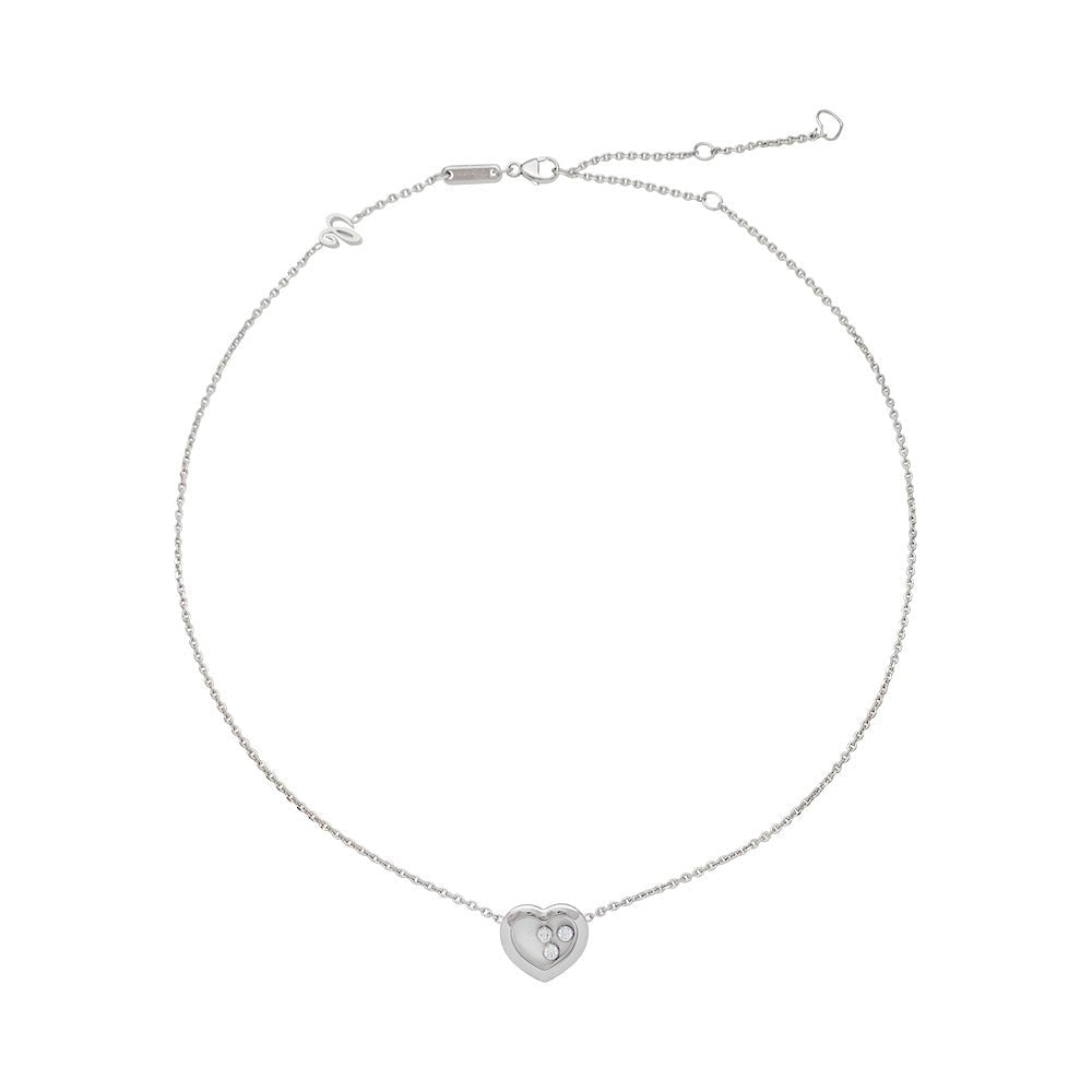 A necklace signed by Maison Chopard, 'Happy Diamond' collection, composed of a 750/000 white gold filed convict link chain holding a 750/000 white gold heart-shaped pendant housing three moving brilliant-cut diamonds. Length: 360-390-420-440 mm Width: 12mm Height: 4mm Weight: 7.80 grams Diamond weight: approximately o.5 carat New price: 3210