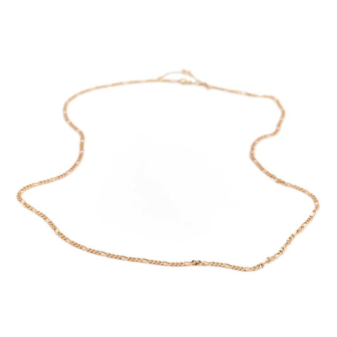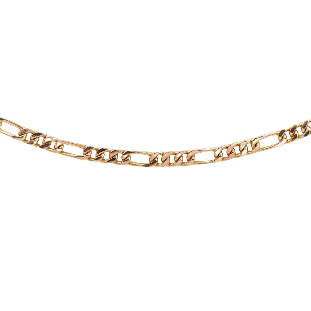 Chain necklace in 18-carat yellow gold figaro mesh with safety chain with clasp. Total weight: 14.18 g Length: 63cm Width: 0.24cm Hallmark: eagle head