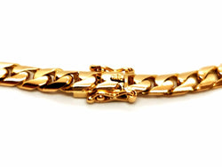 18-carat yellow gold necklace composed of an English mesh chain and a central geometric motif including a removable pendant that can be worn separately. This pattern is set with 3 oval ruby cabochons of approximately 0.88 carat each and is paved with 96 diamonds. Total weight: 38.13 g Total ruby weight: 2.64 carats. Total diamond weight: 2,835 carat Length: 40cm Chain width: 0.46 cm Dimensions of non-removable pattern: 3.8 cm by 1.64 cm Dimensions of removable pattern: 3.29 cm by 2.20 cm Hallmark: eagle head