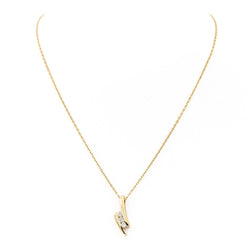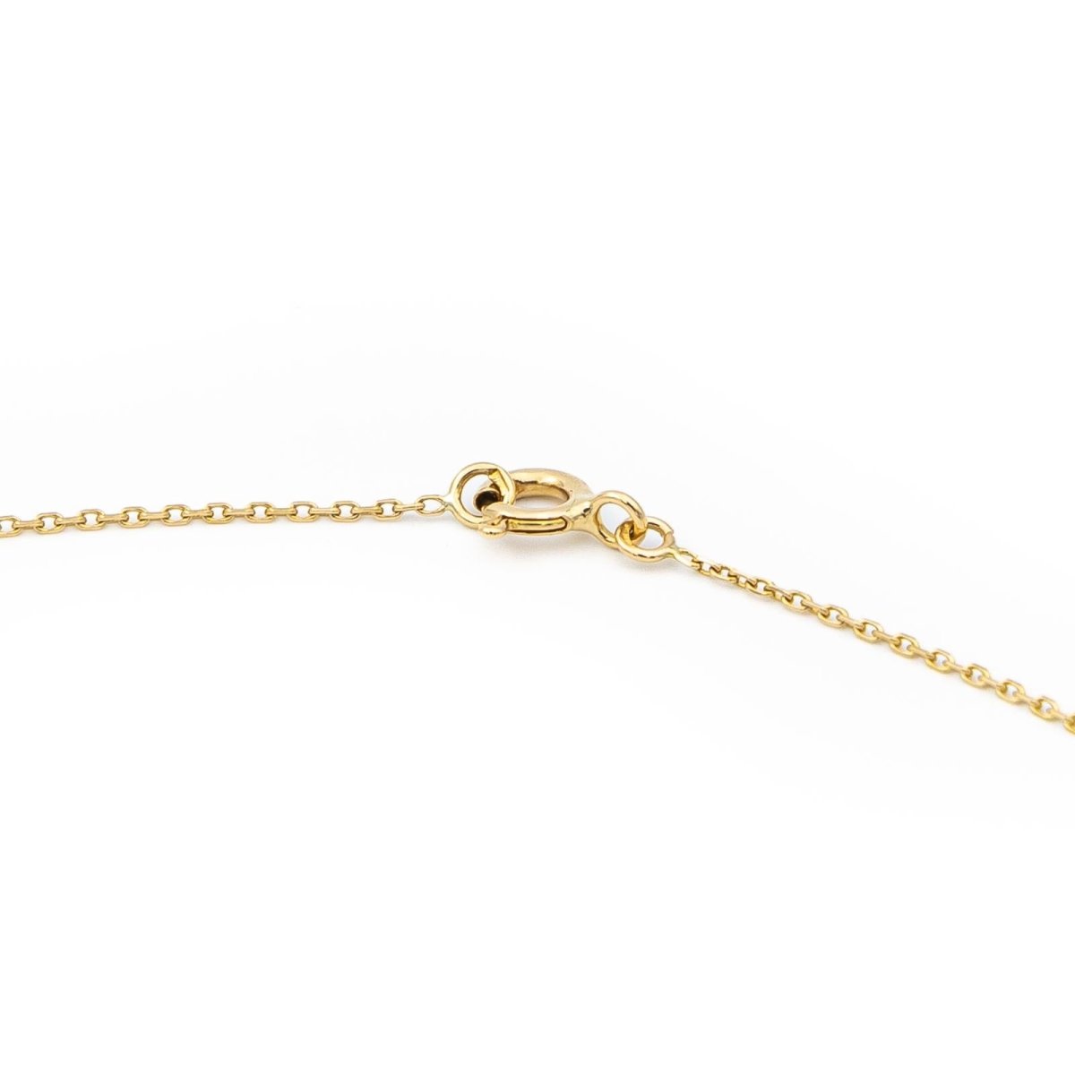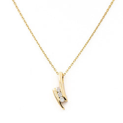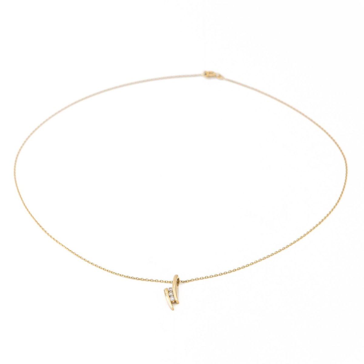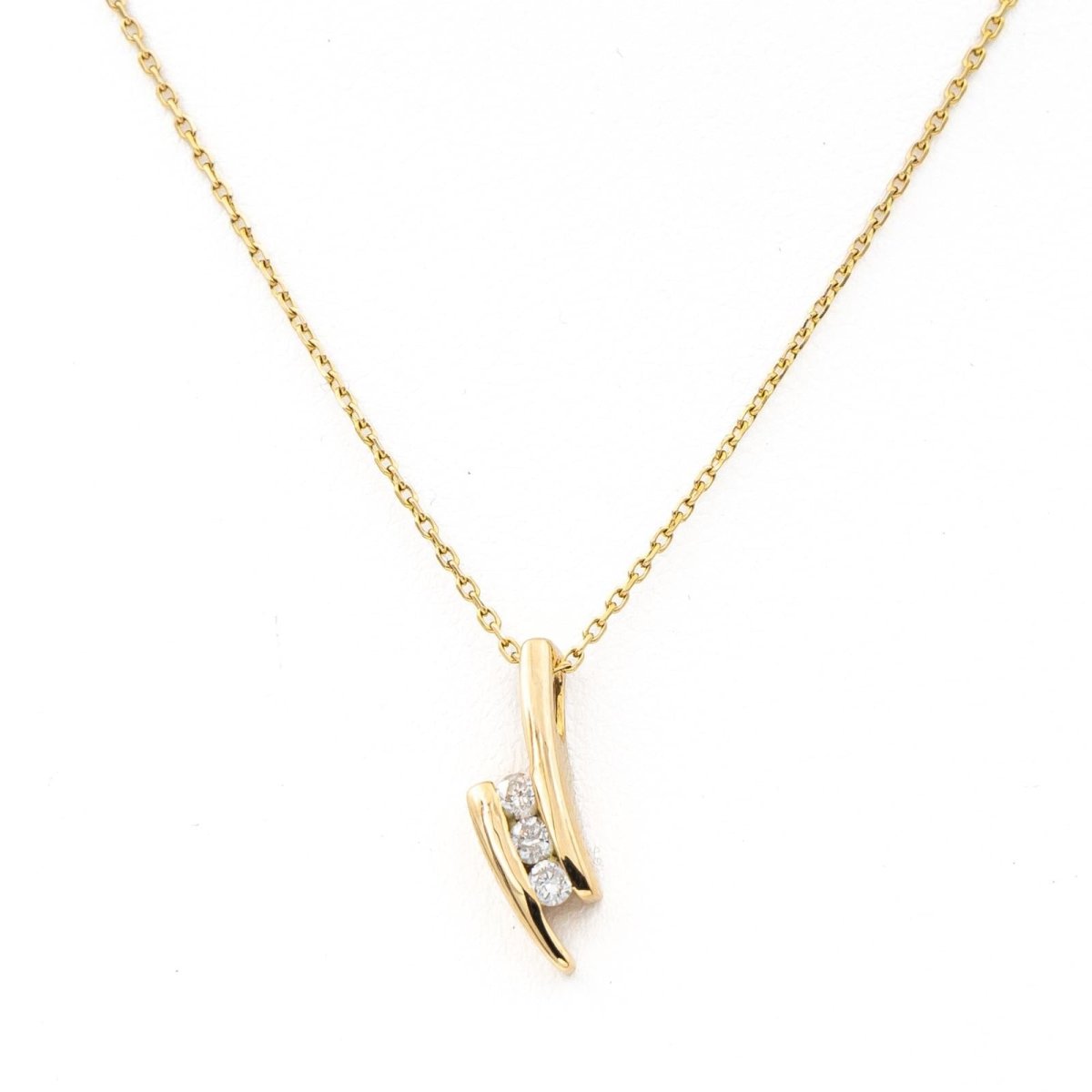 Cable link chain necklace and pendant in 18-carat yellow gold. Pendant set with 3 brilliant-cut diamonds of approximately 0.06 carat each. Total weight: 2.80 g Total diamond weight: 0.18 carat Chain length: 44cm Dimensions of the pendant: 1.70 x 0.60 cm