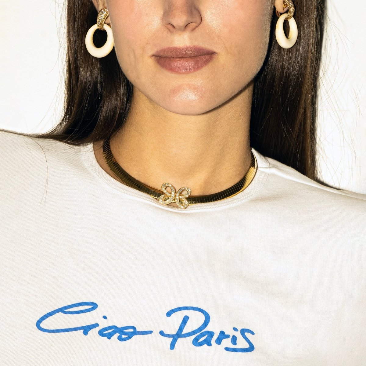 VAN CLEEF & ARPELS Omega Mesh necklace in 18K yellow gold featuring a butterfly set with diamonds.