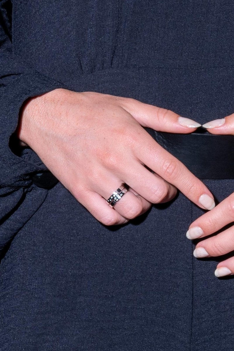 Ring signed by Dinh Van. Seventies collection. medium model. in 750 thousandths (18 carat) white gold. set with 12 diamonds. brilliant cut. for a total of 0.12 ct. finger size: 53. width: 0.69 cm. total weight: 7.45 g. eagle head hallmark. new price: €2090. excellent condition