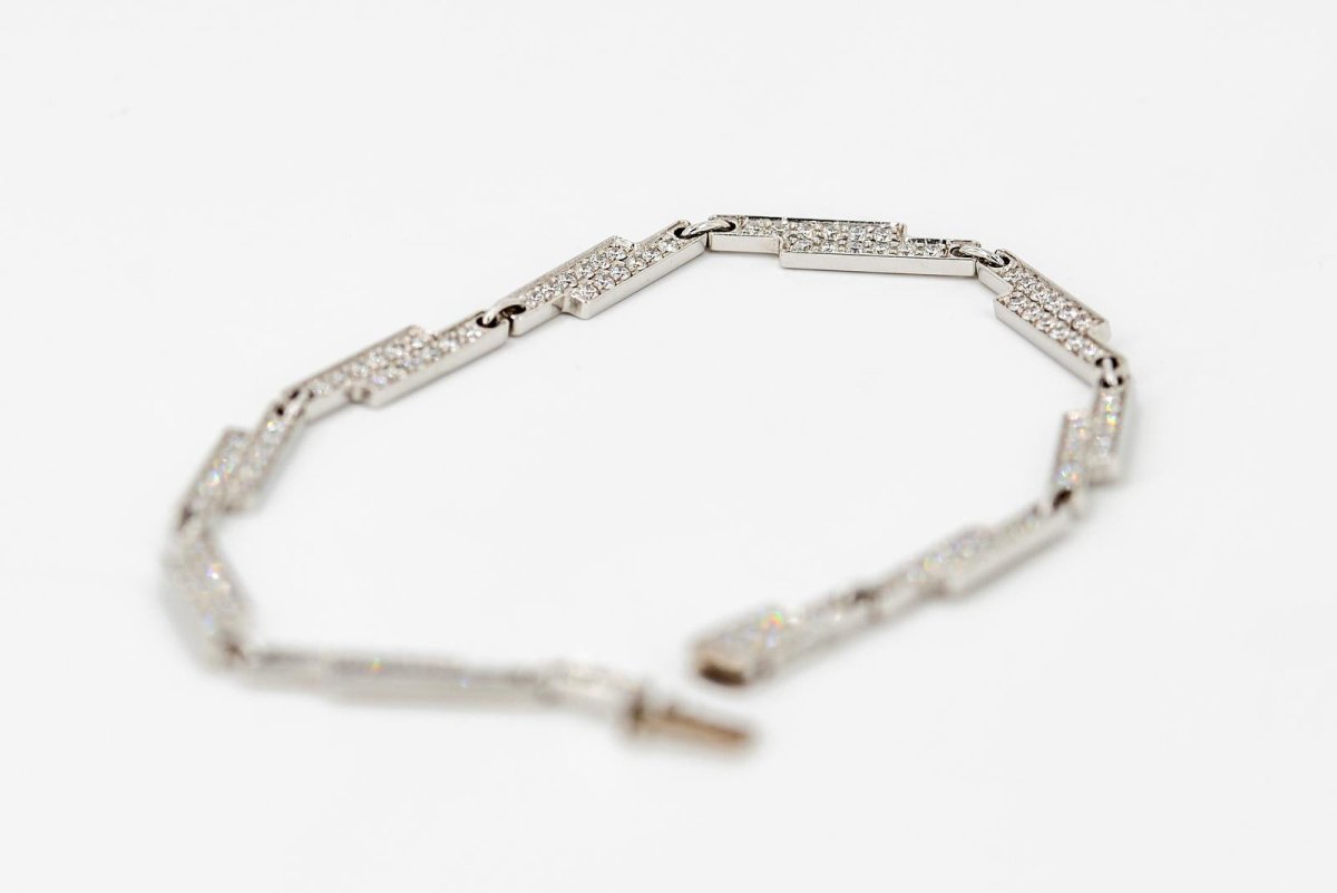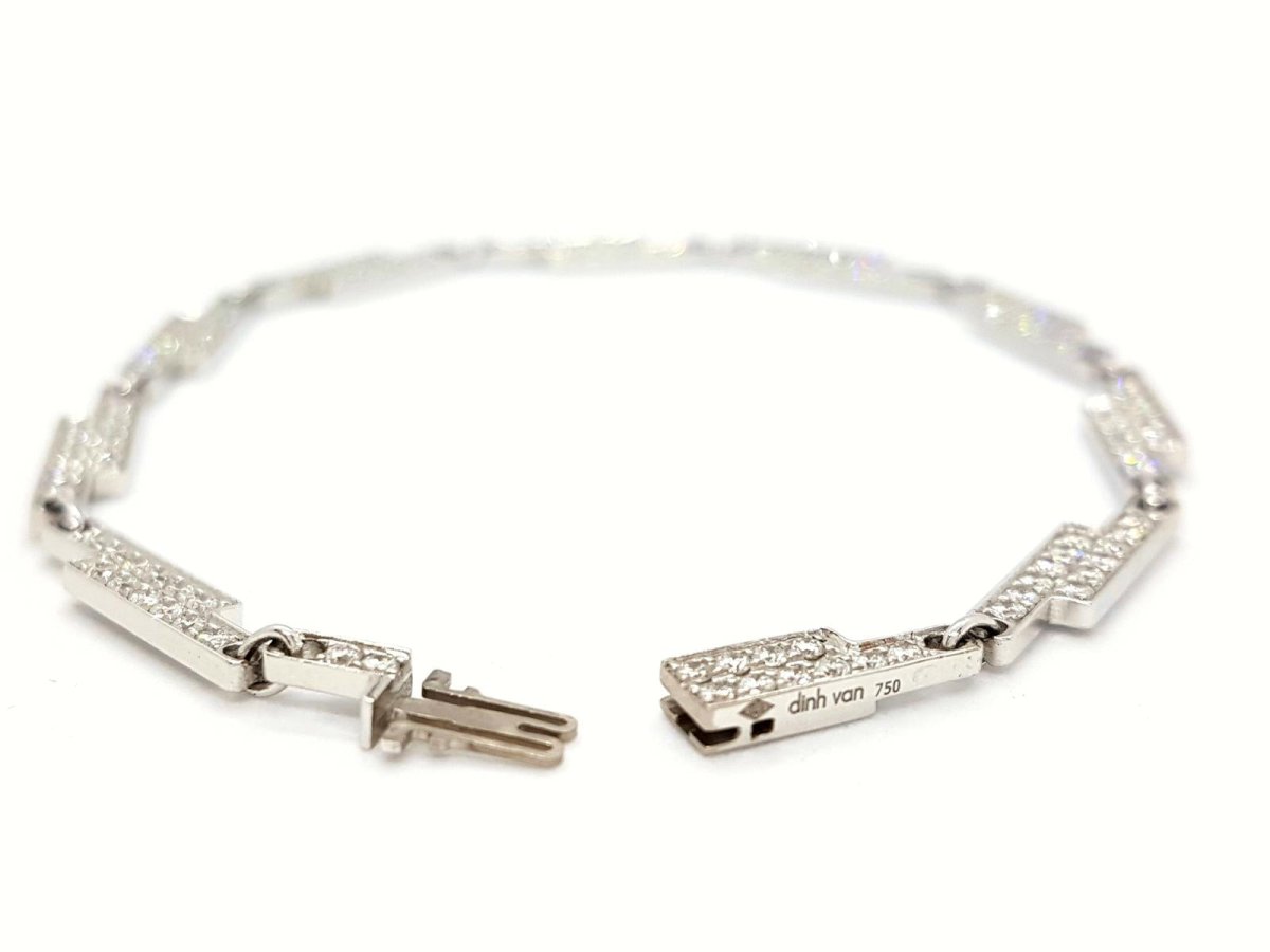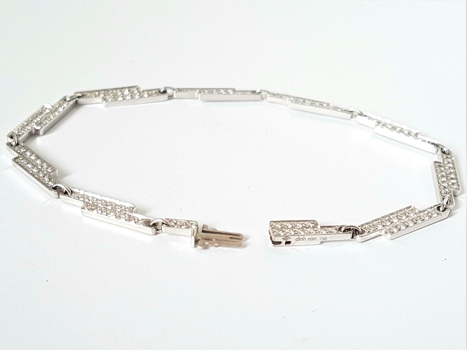 Bracelet signed by DINH VAN, Seventies Collection, in 18-carat white gold paved with brilliant-cut diamonds for approximately 1.50 carats in total. Total weight: 8g Size: 18cm Hallmarked