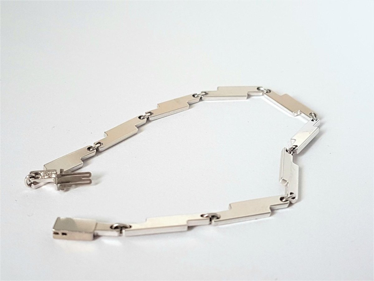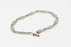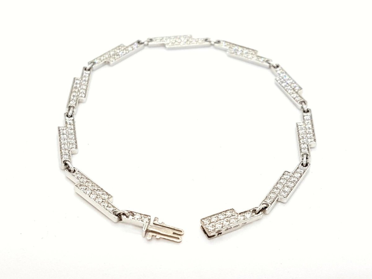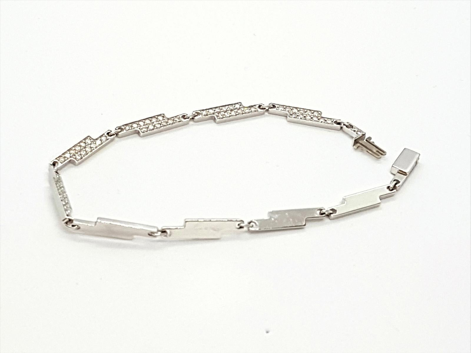 Bracelet signed by DINH VAN, Seventies Collection, in 18-carat white gold paved with brilliant-cut diamonds for approximately 1.50 carats in total. Total weight: 8g Size: 18cm Hallmarked