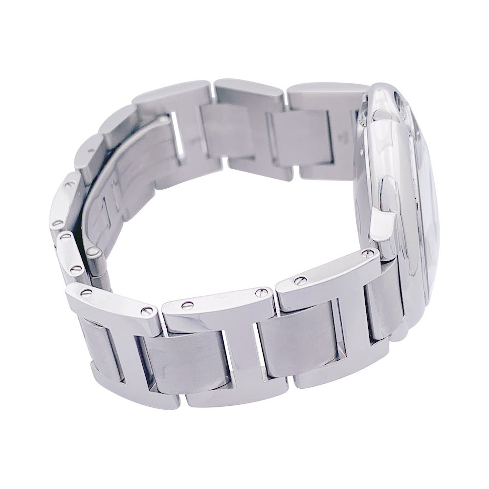 A watch signed by Maison Cartier, 'Ballon bleu' model, in steel on a steel bracelet with folding clasp. Silver guilloché dial, Roman numerals, sword-shaped hands in blue steel.