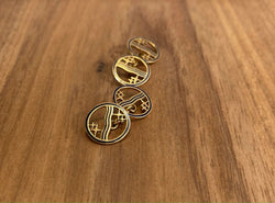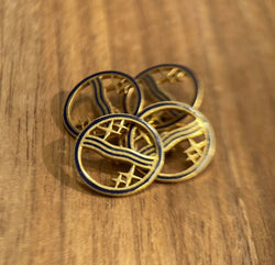 Pair of cufflinks in 18k 750°/°° gold and blue email representing a geometric pattern formed by a sinuous line and two stars inscribed in a circle. Weight: 9.16 grams Circle diameter: 1.7cm