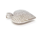 Heart pendant in 750 thousandths (18 carat) white gold. paved with brilliant-cut diamonds for approximately 0.50 ct in total. bail also paved with diamonds. on the back pretty openwork flower pattern. total weight: 4.72 g. dimensions: 2.45 cm x 1.9 cm (bail included). eagle head hallmark. new condition