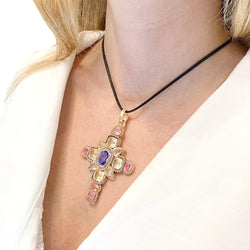 Cross pendant in rose gold, citrines, tourmalines and tanzanite