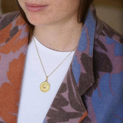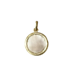 Augis "love medal" pendant in 18 Kt yellow gold (hallmark: owl), decorated with the inscription "+ qu'hier - que tomorrow", set with 5 rose-cut diamonds, and red stones (synthetic rubies) . Unengraved back. Work from the beginning of the 20th century, signed A.AUGIS. Gross weight: 7.15 g Height (with bail): 3.40 cm Width: 2.30 cm Condition: slight micro scratches and slight traces of welding on the gold parts, traces especially on the back, see photos. A jewelry designer since 1830, the Lyon-based company Augis specializes in the manufacture of religious and sentimental medals. In 1907, she created her famous love medal, based on the verse of Rosemonde Gérard: “For you see, every day I love you more, today more than yesterday and less than tomorrow”. Much more than a piece of jewelry, a declaration of love... All our antique pendants.