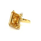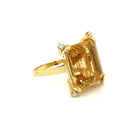Stunning authentic retro ring with a charming yellow beryl centerpiece, from the emerald family, weighing 16 carats, with excellent color and clarity, it is surrounded by approximately 0.20 carat round brilliant cut diamonds set on all four scratches in the corners. Handcrafted in Italy, circa 1950'CONDITION: New METAL: 18k GoldGEMSTONE: 18ct Citrine - 0.20ct Diamond SIZE: US 7 - IT 14 - FR 54- UK N/O, Resizable on request, free of charge WEIGHT: 7 grams* each piece of jewelry we offer for sale is professionally tested by our in-house team of IGI/HRD gemology specialists - **the jewelry comes with its gemological card and warranty in a beautiful ring box